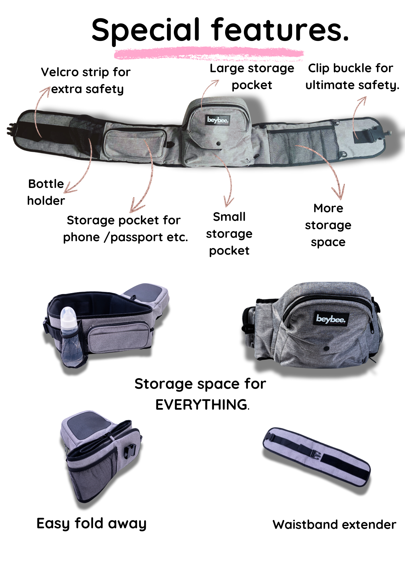 - Optimal support for baby's hips and spine, reducing pressure on your lower back. Supports babies up to 20kg for various growth stages.